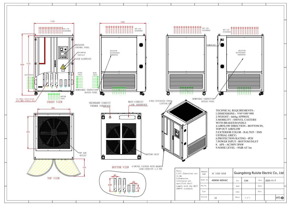 RST Electric은 대규모 AC 전원 시스템 검증을 위해 설계된 견고한 400kW 400V 로드 뱅크를 출시합니다. 유틸리티 규모의 발전기 테스트, 미션 크리티컬 UPS 시운전 및 산업용 전력 애플리케이션용으로 설계된 이 400kW 400V AC 로드 뱅크는 고급 단계 제어 및 포괄적인 안전 보호 기능을 갖춘 고정밀 저항 부하를 제공합니다. 지속적인 전체 부하 작동을 위해 제작된 이 제품은 강제 공기 냉각, 견고한 IP20 등급 섀시, 로컬 HMI 및 원격 PC/Modbus 인터페이스를 포함한 이중 제어 모드를 갖추고 있습니다. 발전소, 대규모 데이터 센터 또는 재생 가능 에너지 시설에 배포되는 이 로드 뱅크는 까다로운 테스트 환경에 필요한 신뢰성과 정확성을 제공합니다.